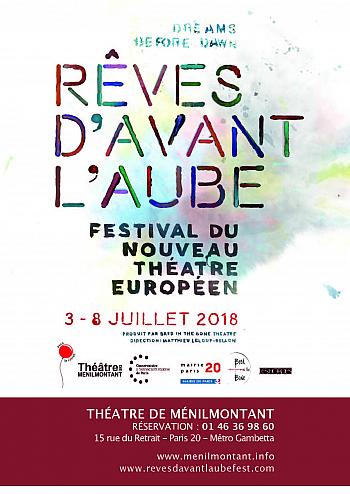 Bienvenue dans nos rêves d’avant l’aube, du 3 au 8 juillet 2018 pour six grandes journées au Théatre de Ménilmontant avec 75 événements - spectacles - ateliers - rencontres, 27 compagnies et artistes solos représentant 17 nationalités différentes.